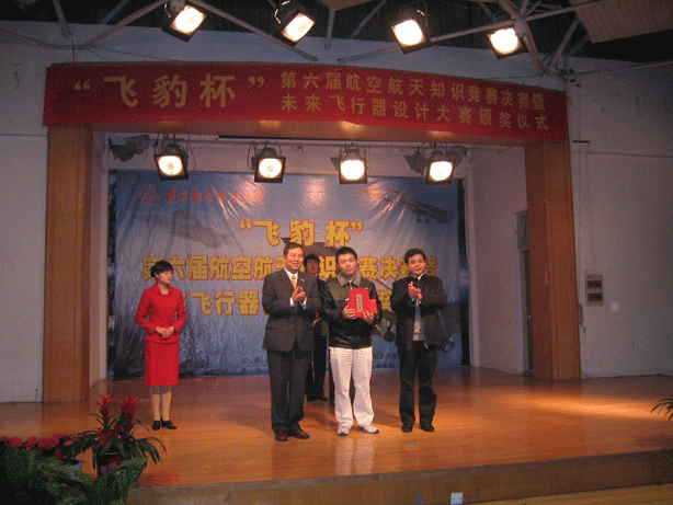 12月9日晚,由我航空宇航公司承办的校科技节重要赛事――第六届“飞豹杯”航空航天知识竞赛在将军路校区老员工活动中心落下帷幕。暨第二届未来飞行器设计大赛颁奖仪式在隆重举行。