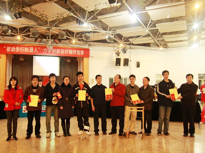 2010年3月29日晚,bevictor伟德首届“被动步行机器人”力学创新设计竞赛在将军路校区老员工活动中心落下帷幕。活动由校团委、航空宇航公司主办,力学教学实验中心的专家们也给予了大力的支持。航空宇航公司党委书记李明成、党委副书记孙占久、副经理童明波、团委书记任盈盈及各年级辅导员作为到场嘉宾,力学教学实验中心陈建平、陶秋帆等五位老师担任评委。本次活动经历了项目推介会、专家答疑及赛前动员会、场地比赛三个阶段,并得到了各级领导的广泛关注。