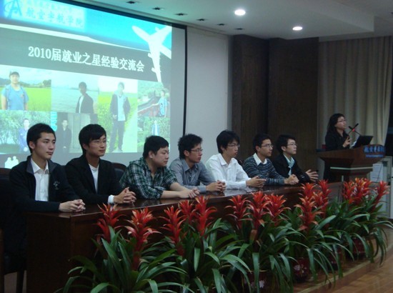 交流会分四个环节进行,首先由公司06级7位就业之星介绍各自在就业过程中的体验,这七名同学分别来自公司各个专业,就业单位囊括了航空主机院所、世界500强、国有大型企业等多个方向具有代表性的企事业单位。他们在交流会中尽述了在就业过程中碰到的问题和思考,详尽传授了他们总结的面试技巧和与HR的交流经验,并特别告诫在坐的同学,就业是一次严峻的考验,只有意志坚定、重视细节、勇于攀登的人才会到达胜利的彼岸。之后交流会进入交流互动环节,由现场的听众就各自感兴趣的话题向各位嘉宾提问,七位嘉宾根据各人不同的情况逐一解答。在活动的最后,员工处职业生涯规划部沈雪萍老师进行总结发言,沈老师对7位就业之星的发言进行了全面而深刻的点评,并对即将就业的07级员工提出了宝贵的意见和建议。在整个交流的过程之中,员工的例证鲜明,妙语连珠,总结思考全面而深刻,对于普通同学的借鉴意义巨大,沈老师的总结在员工的实践经验基础上更进行了理论上的总结和概括,不仅涵盖了大量的实用信息,更将对于就业行为和思路提升到了更加广阔的空间,以上发言均引起广大同学的强烈共鸣,全场多次对报告者抱以热烈的掌声。尽管交流会已近尾声,但同学们仍旧意犹未尽,最终同学们与各位就业之星进行了分组讨论交流。经过三个小时的交流会在热烈的讨论中圆满结束。