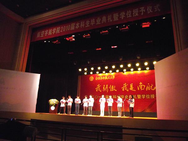 朱春玲老师在典礼上宣布了《关于表彰2010届本科生先进班级、优秀毕业生、十佳就业之星、三好员工、优秀员工干部的决定》,为代表们颁发了证书。赵宁老师宣读毕业生名单,并和朱春玲老师、李明成老师为本科生代表颁发了学位证书和毕业证书。典礼结束后,毕业生们向母校的老师献花表达感恩。