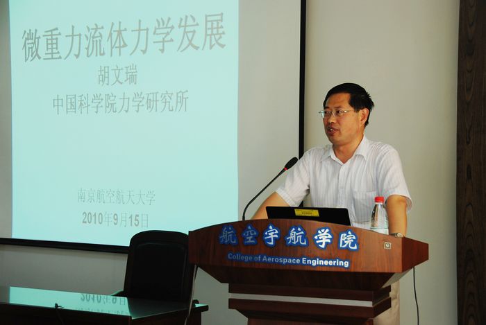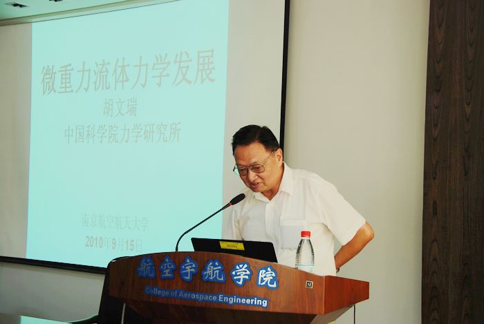 2010年9月15日下午,在航空宇航公司学术报告厅,中国科公司胡文瑞院士为公司师生作了一场题为“微重力流体力学发展”的学术报告,报告会由航空宇航公司经理赵宁教授主持,公司200余名师生有幸聆听胡文瑞院士精彩的报告。报告结束后,胡院士还耐心回答了同学们的相关提问。