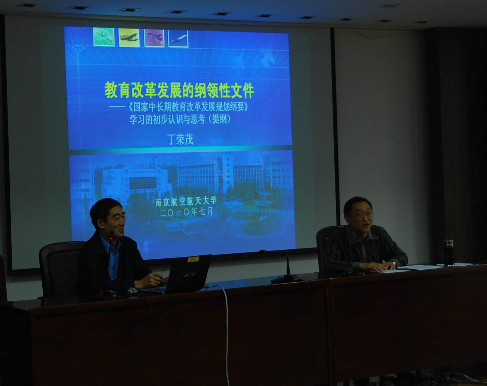 会议最后,公司邀请了原校纪委书记、南航关心下一代工作委员会主任丁荣茂老师为全院教职工做了《教育发展规划纲要》辅导报告。