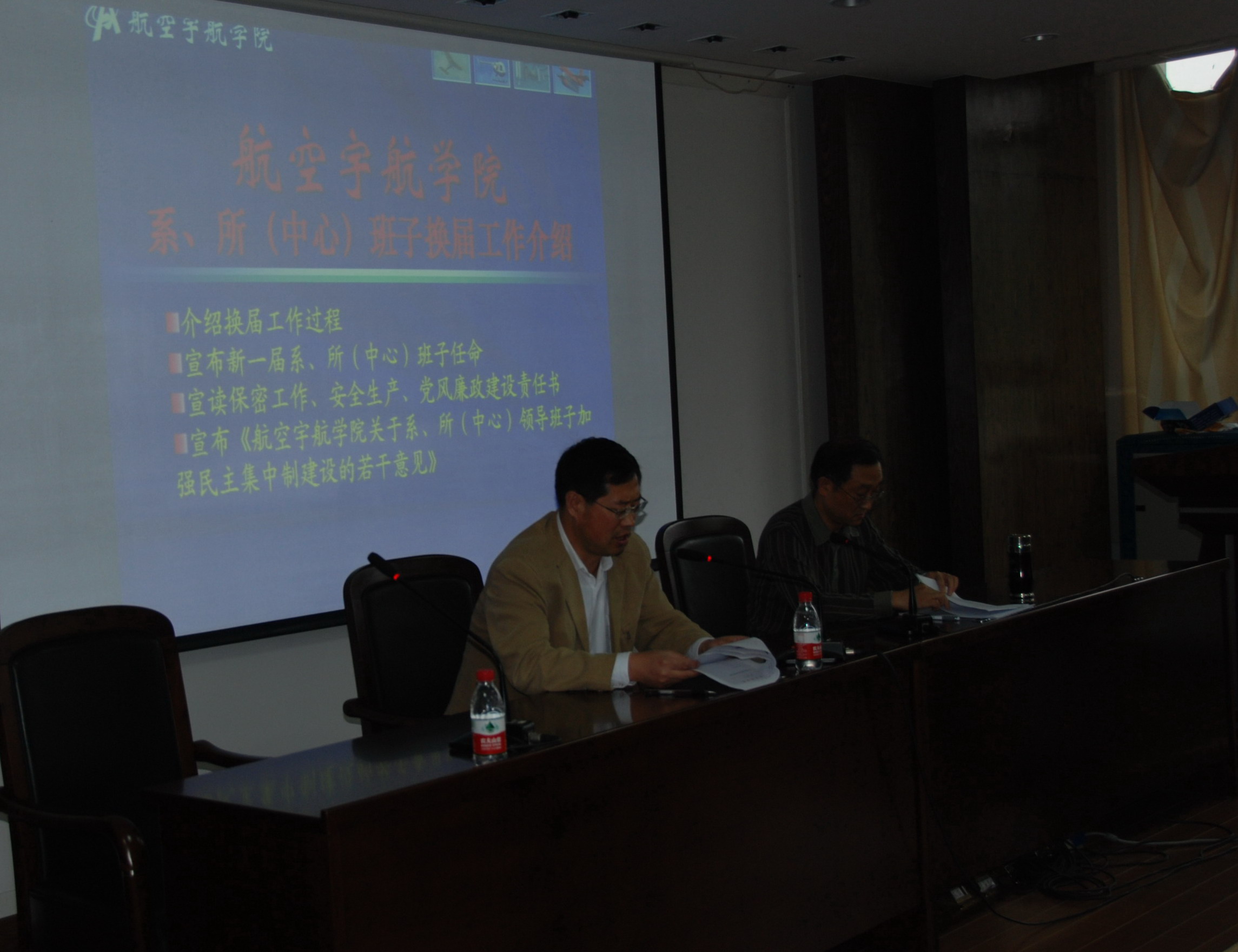 首先李明成书记总结了新一届系所班子换届工作情况,赵宁经理宣读了《关于姚卫星等同志任职的通知》《关于同意空气动力学系成立两个中心的决定》以及《航空宇航公司关于系、所(中心)领导班子加强民主集中制建设的若干意见》,宣告新一届系所班子成立。
