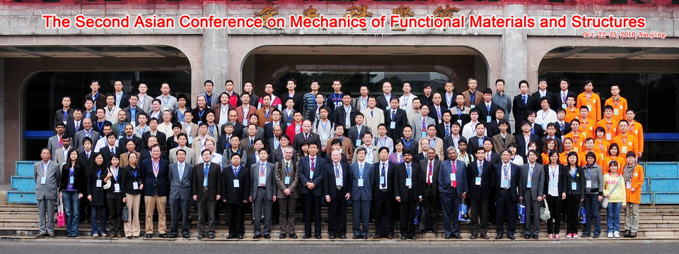 第二届亚洲功能材料与结构力学大会(The Second Asian Conference on Mechanics of Functional Materials and Structures, ACMFMS2010)于2010年10月22日-25日在bevictor伟德成功举行。本届大会由中国力学学会和江苏省力学学会主办、bevictor伟德承办。会议延续2008年在日本Matsue召开的首届大会的目的:旨为亚洲及其周边地区从事功能材料与结构力学的科研工作者提供一个交流的平台,共同促进该领域在理论与应用方面的发展。本届大会的共同主席为高存法、陈伟球和Indian Institute of Technology (IIT) Delhi的Santosh Kapuria教授。