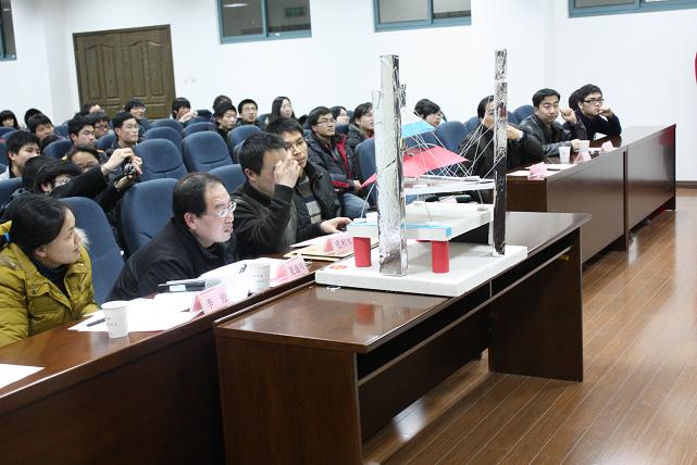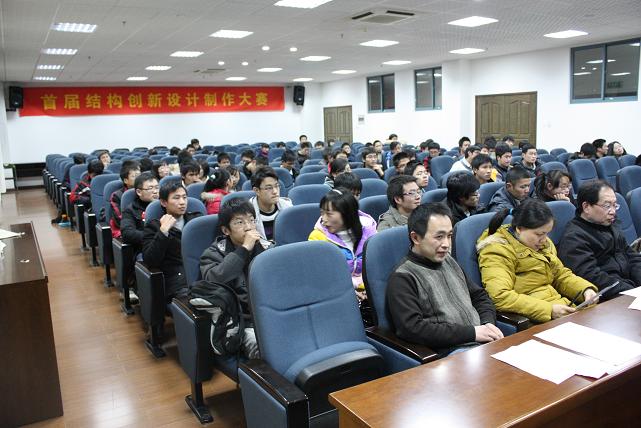 首届结构创新设计制作竞赛属公司老员工科技节的一项重要活动,面向全校员工,由航空宇航公司承办,航空宇航公司土木工程系负责技术支持。比赛于2010年12月28日在航空宇航公司报告厅举行。航空宇航公司经理赵宁教授、副经理童明波教授、公司党委孙占久副书记参加了此次决赛。