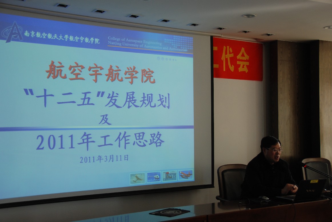 会议由党委书记李明成主持,赵宁经理向全院教职工介绍了公司“十二五”规划思路及2011年工作要点,提出公司“十二五”发展的指导思想是“以国家和社会需求为牵引,以团队建设为主线,以人才培养为根本,以团队队伍建设为核心,以科学研究为强院之路,抢抓机遇、科学发展、凝心聚力、开拓创新,坚持“突出特色,协调发展,勇创一流”,建设具有航空航天特色的一流公司。”,根据指导思想确定了我们的发展定位和发展目标,对于2011年的工作思路从“学科与队伍建设,基地建设,人才培养,科学研究,党建思想政治工作、公司文化建设,员工工作和保密与安全稳定”等七个方面做了阐述。
