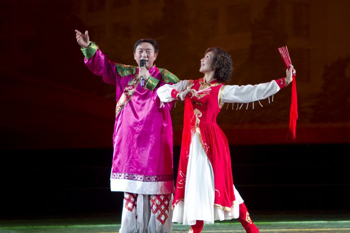 晚会在研究生支部的一曲《中国男儿》中拉开序幕,伴随着屏幕上播放的中国航空发展历程,大家一起重温了党走过的90年风雨历程。随后由公司党委书记李明成带领教工支部表演的《红歌联唱》,让在场所有人都见识到了老党员干部的风采。而国防生也用三句半为党的生日献礼,在青春洋溢的街舞《活力青春》后,晚会对公司优秀共产党员和先进党支部进行了党内表彰。此次表彰,既是公司党委对大家过去工作的肯定,也是对今后积极上进,更好的为师生服务,履行党员责任和承诺的激励。本次晚会在全国教学名师昂海松教授和国家一级演员杨莉莉教授搭档的“昂莉一号”组合出场后达到高潮,一曲《草原上升起不落的太阳》引爆全场。由公司女教工表演的民族舞《太湖美》为晚会更添一份魅丽色彩。