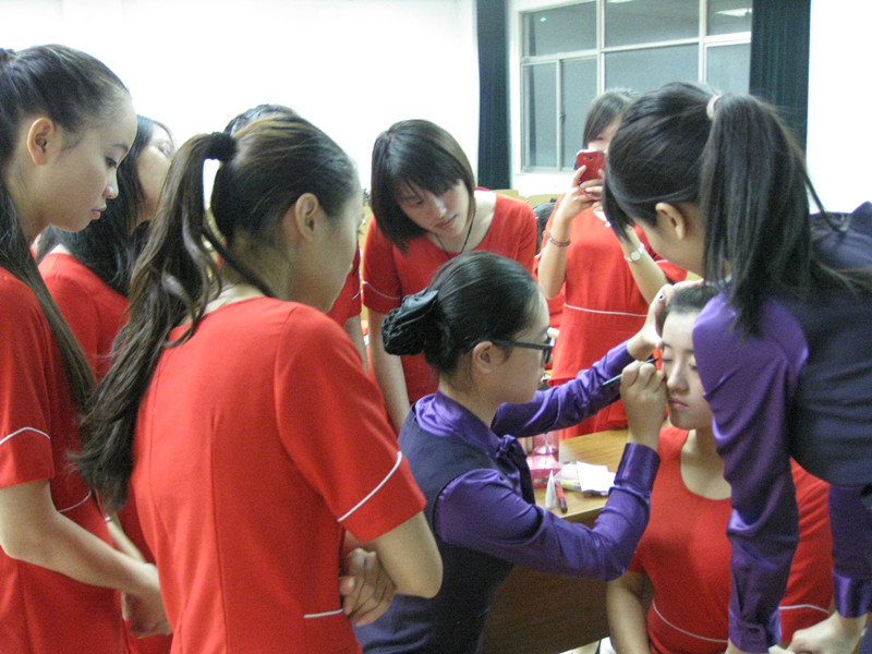 礼仪团成员系统学习了礼仪知识和简易化妆两部分内容。校礼仪队成员即耐心的讲述礼仪的小知识以及在生活中的作用外,还分别示范了礼仪活动中的站姿、坐姿、蹲姿、走姿,以及如何引领嘉宾上台颁奖,如何端茶斟水等实用技能。同时,还现场教授了淡妆的化妆技巧。