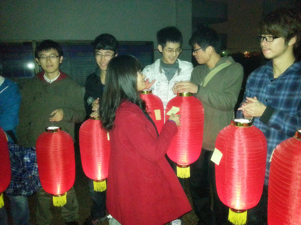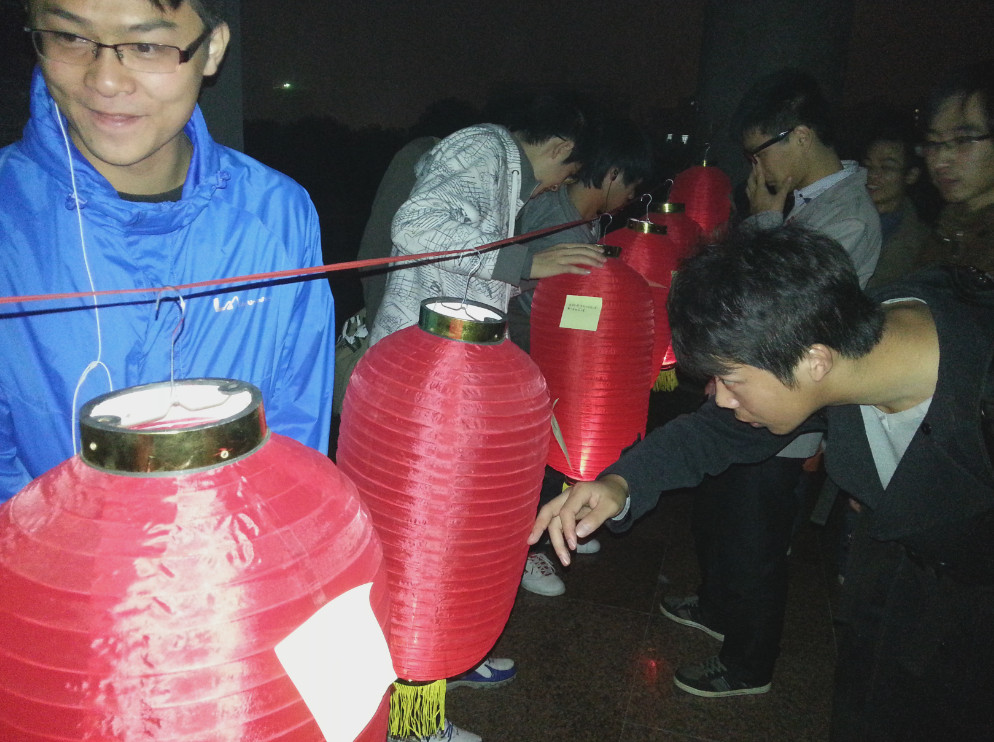 公司组织以灯谜的形式讲述党的传奇故事,设置趣味问题,让同学们在猜灯谜的同时增进对党史国情的了解。活动由员工党员们将灯谜送入各个寝室,在同学们答题的同时广泛收集他们对自己未来的期望和对党对祖国的美好祝福。8日晚上,原定于在砚湖进行的活动改在3号教学楼旁进行,虽然下着大雨,但同学们的热情依然高涨,积极参与到猜灯谜、写祝福的活动中。十八个灯谜,代表着十八大,十个灯笼,代表着风雨同舟的十年,八盏莲花灯,选取中国传统的吉利数字表达祝福。点点火光映着一张张年轻的面庞,折射出大家对未来的美好展望和对党对祖国的真情祝愿。