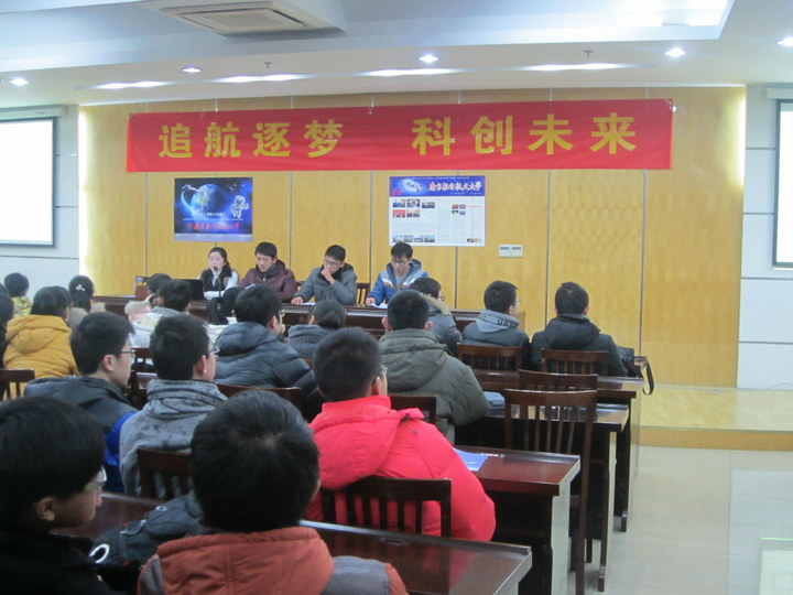 参加活动的是盐城景山中学高二全体理科班的同学们。随着同学们陆续入座,“景秀南航”活动正式开始。开场主持人以航空航天小知识为引抛出一些问题,同学们表示好奇的同时也踊跃回答,现场的气氛渐渐活跃起来。