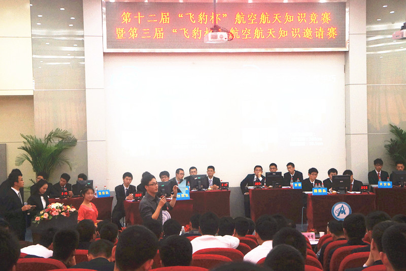4月14日(周日)上午,第十二届“飞豹杯”航空航天知识竞赛暨第三届“飞豹杯”航空航天知识邀请赛在公司将军路校区一号楼四楼报告厅拉开了帷幕。中国航空工业集团第一飞机设计研究院副总师杨卫平、人力资源部副部长刘孟彦、西北工业大学航空公司党委副书记赵洪章受邀参加,出席现场的还有公司董事长助理熊克、航空宇航公司党委书记李明成、员工处副处长陈修文、校团委副书记方正、航空宇航公司党委副书记王中叶、老员工科技创新基金管理办公室主任袁磊。经过了南航校内预赛的选拔,来自航空宇航公司的暗箭队、机电公司的猎鹰队和民航/飞行公司的台风队脱颖而出,在决赛中与特邀的西北工业大学大学翱翔队、上海交通大学天交队、浙江大学求是队展开了激烈角逐。