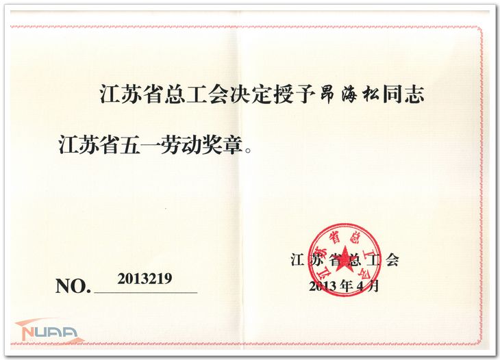 五一前夕,江苏省总工会通报表彰了荣获2013年江苏省五一劳动奖章、奖状的个人和集体,公司昂海松老师荣获江苏省五一劳动奖章,成为在宁高校大学教师获得2013年江苏省五一劳动奖章的3个先进个人之一。