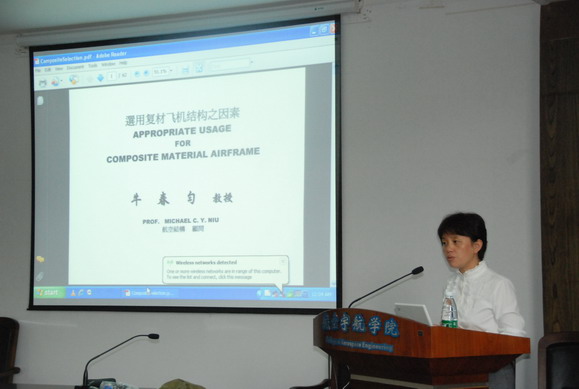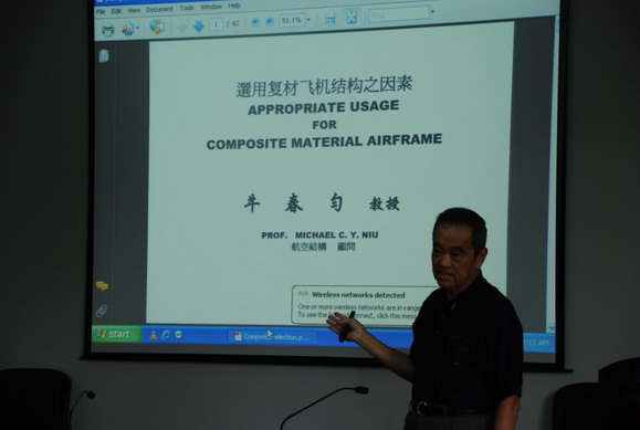 应前董事长朱剑英教授邀请,美国民用飞机复合材料结构设计及适航领域的知名专家美籍华人、艾笛航空结构顾问公司总经理、公司客座教授牛春匀教授来公司访问,于2013年9月6日下午,在18号楼529报告厅,做了题为“选用复合材料飞机结构之因素”的精彩学术报告。报告会由航空宇航公司副经理朱春玲教授主持,全校师生近两百人参加了报告会。