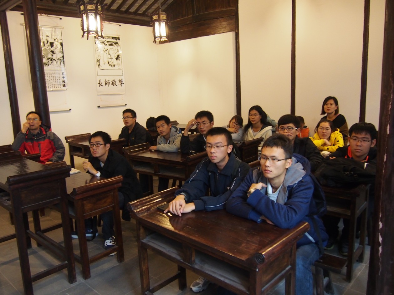 参观结束后,在钱煜先生的带领下,师生共同观看了“七房桥传奇”纪录片,更深入地了解了钱伟长先生的成长历程。钱伟长先生在祖国危难关头弃文从理,为祖国的力学事业鞠躬尽瘁,诠释了“力学报国此身轻”的含义。钱老的丰功伟绩和爱国之心震撼了所有人。大家端坐在国学励志课堂,仿佛看到了当年无数学子汲取知识的身影。