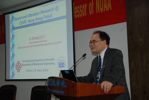 仪式结束后,成利教授为公司师生做了题为“香港理工大学声学与振动研究所的研究进展”的学术报告,介绍了关于振动与噪声、结构健康监测、智能结构等方面的研究进展,并与在场的教师就相关领域进一步交流、学