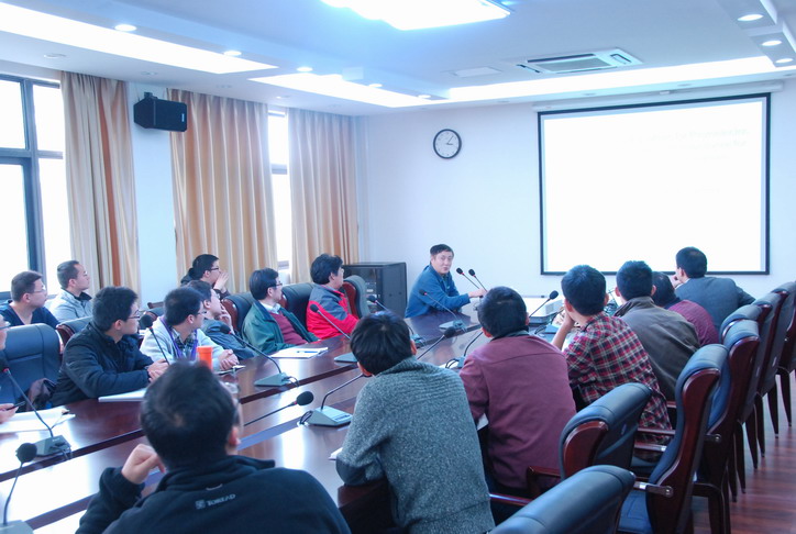 访问期间杨嘉实教授做了题为“Two-dimensional equations for piezoelectric plates with surface acoustic impedance for resonator and sensor applications”的学术报告。杨教授首先介绍了石英谐振器分析的背景,详细介绍了最近的研究结果:用于声波传感器设计的考虑表面阻抗效应的一般标量波动方程。报告结束后,现场老师和员工就报告内容与杨嘉实教授进行了积极讨论。
