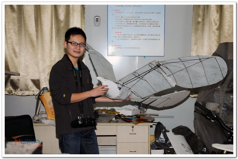 扎实打好数学基础后,黄鸣阳带着团队们走进了航空实验室,主持参与三项国家级创新基金运作。2012年12月,他在全国教育名师昂海松教授的指导下,向仿生飞行器发起冲击。“之所以选择仿生飞行器,主要是因为受国外研究影响。而且现在国内也在做这个,但进展不是特别快。做这个也算壮我国之威吧。我个人觉得飞行器模仿飞行动物是大势所趋,将来无论是从动力结构和机动效率都是尽可能模仿自然界中的飞行动物。经过成百上千年的进化而来的生物,它们比我们现有的飞行器更为复杂和合理。”提到为什么独独对仿生飞行器“一往情深”,黄鸣阳这样回答记者。