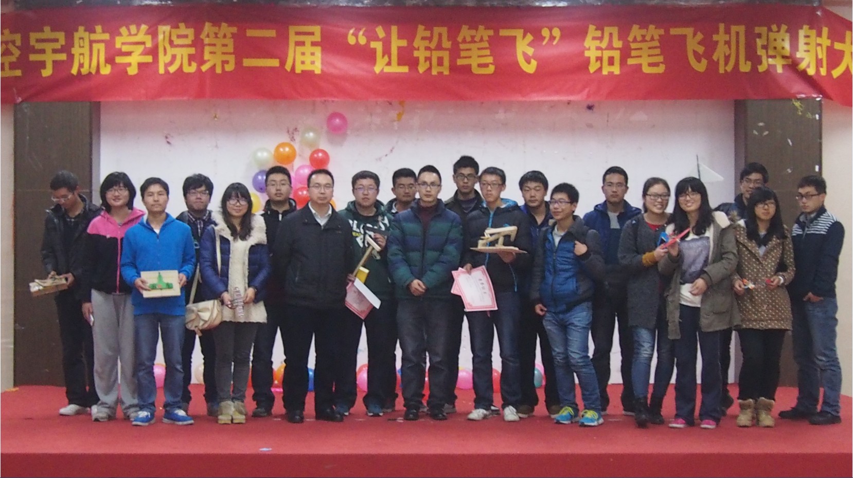 12月6日,航空宇航公司第二届“让铅笔飞”铅笔飞机弹射大赛在艺术中心多功能厅成功举办。航空宇航公司裘进浩教授、高亚东副教授、郑祥明副教授三位老师莅临现场担任本次比赛的评委。