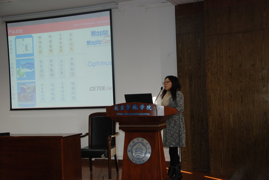 访问期间,张文丰博士做了题为“Symbolic Computation in Advanced Space and Mechatronic Applications”的学术报告。报告介绍了MapleSim工具下建立行星探测车的动力学模型,讨论了行星探测车的路径优化,以及通过硬件在环来模拟仿真整个行星探测车的行驶环境特性。该报告还表明研发平台开发过程中数学符号运算在相似的动力学仿真研究中的重要性。