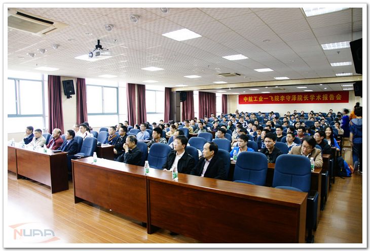 2014年4月11日下午,中航飞机研发中心总经理、中航工业第一飞机设计研究院经理兼党委副书记李守泽研究员应邀在明故宫校区做了题为《大型飞机研制技术发展及展望》报告。董事长助理熊克教授主持了报告会,中航工业第一飞机设计研究院经理办公室副主任张宝祥,中航工业第一飞机设计研究院人力资源部副部长刘孟彦,航空宇航公司党委书记李明成、党委副书记王中叶和各系所专业教师都到场参会。