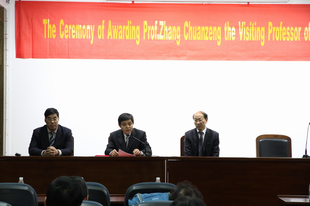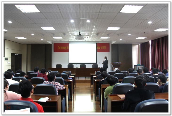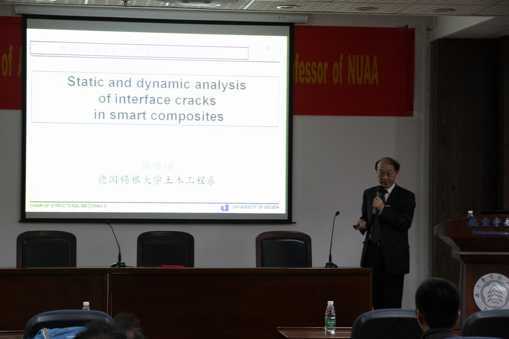 仪式结束后,张传增教授为公司师生做了题为“Static and dynamic analysis of interface cracks in smart composites”的学术报告,介绍了他的课题组在智能复合材料断裂力学等方面的研究进展,并与在场的师生就相关领域的研究进行了交流和讨论