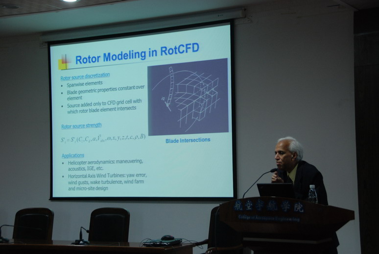 访问期间,Ganesh Rajagopalan教授为公司师生做了题为“Advancements in Computational Fluid Dynamics for Rotor Applications”的学术报告。报告内容涉及旋转机械如直升机旋翼、风机、螺旋桨、涵道风扇等的流场特性和运转特性,重点讲述了直升机旋翼CFD高效计算方法。讲学结束后,Ganesh Rajagopalan教授还与航空宇航公司直升机系的师生们开展了深入的讨论,从讨论中加深了对于这一国际前沿领域的了解。
