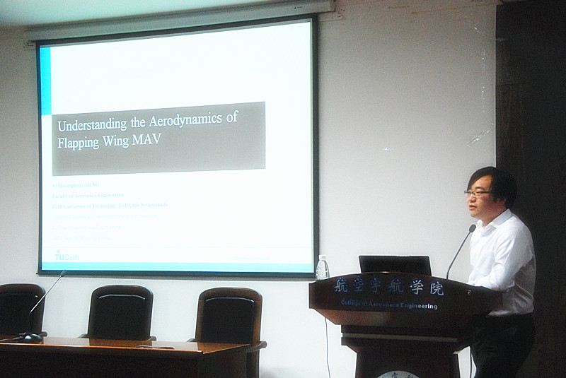 访问期间,邓双厚博士为公司师生做了题为“Understanding the Aerodynamics of Flapping Wing Micro Air Vehicle”的学术报告。报告内容包括先进风洞试验技术、扑翼非定常空气动力最新研究进展与成果等。报告结束后,荷兰代尔夫特理工大学航空宇航公司邓双厚博士还与与会师生开展了深入的讨论,双方获益匪浅。