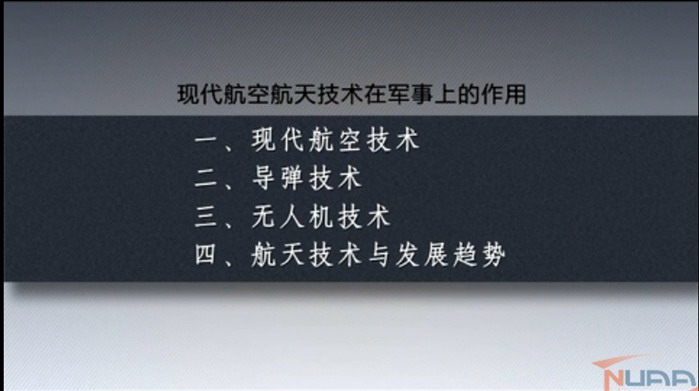 今年5月,应中共中央党校邀请,公司国家级教学名师昂海松教授赴北京进行“共产党员网培训课程”的视频讲座拍摄,课程题目是“现代航空航天技术在军事上的作用”, 共分4集,分别为第一集“现代航空技术”,第二集“导弹技术”,第三集“无人机技术”,第四集“现代航天技术”。该课程于今年10月28日在“共产党员网”上正式发布。这是公司首次视频课程首次刊播在“共产党员网”上。