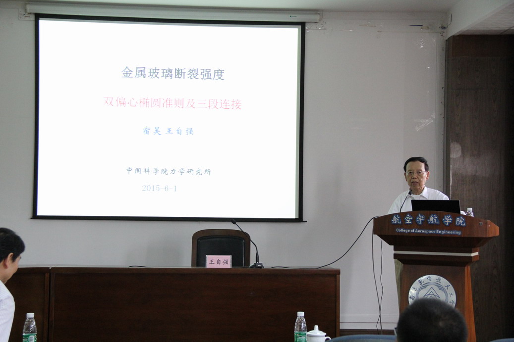 应公司机械结构力学及控制国家重点实验室郭万林教授邀请,中国科公司院士、中科院力学所王自强研究员于2015年6月10日至14日访问公司,并于6月11日为公司学子作题为“金属玻璃断裂强度”的报告。郭万林教授主持了此次报告。