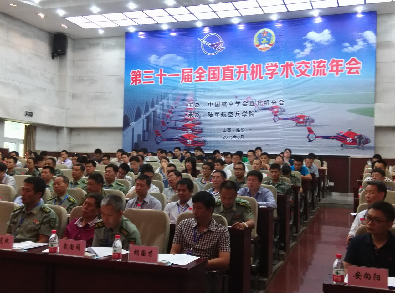 中国航空学会直升机分会第31届年会于2015年8月20日至21日在山西临汾市举行。本届年会由中国航空学会直升机分会主办,陆军航空兵公司承办。会议主题是:直升机新技术与人才培养。本届年会共收到论文458篇,其中353篇收入论文集。陆海空三军、民航、航空工业相关的院校、研究所、工厂和中外合资、民营企业、学术期刊等39个单位共145名代表参加了会议。