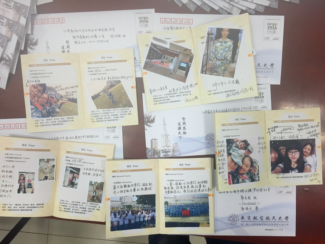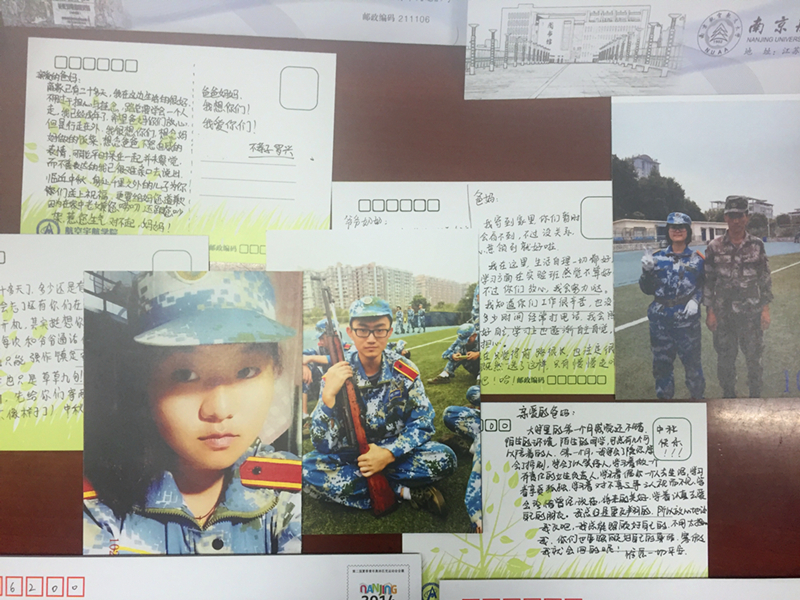 一张明信片。公司为每个新生准备了一张明信片,现场书写明信片。明信片上精挑细选了每位新生在军训期间最靓丽的照片。新生在新家庭灿烂的笑容是让父母最安心最感动的中秋礼物。