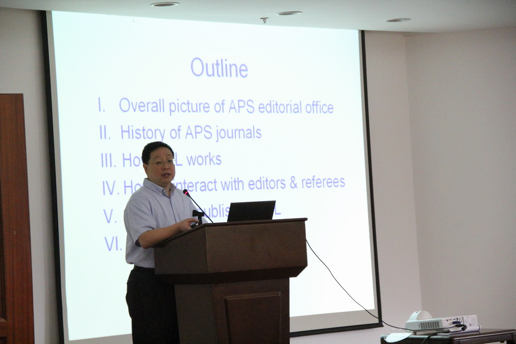 报告内容丰富、生动、精彩,介绍了APS刊物审稿流程和评审人的选择规则、与编辑和评审人沟通的注意事项、如何解读编辑来信、作为评审人撰写审稿意见的注意事项以及大家关心的其他问题。郭万林教授主持了此次报告。