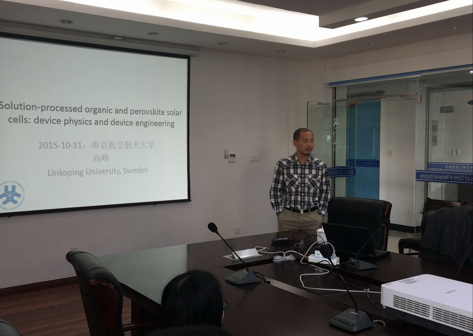 应公司机械结构力学及控制国家重点实验室杨颖教授邀请,瑞典林雪平大学高峰博士于2015年10月11日至14日访问了公司,并于10月11日为公司师生做题为“Solution-processed organic and perovskite solar cells:device physics and device engineering”的学术报告。