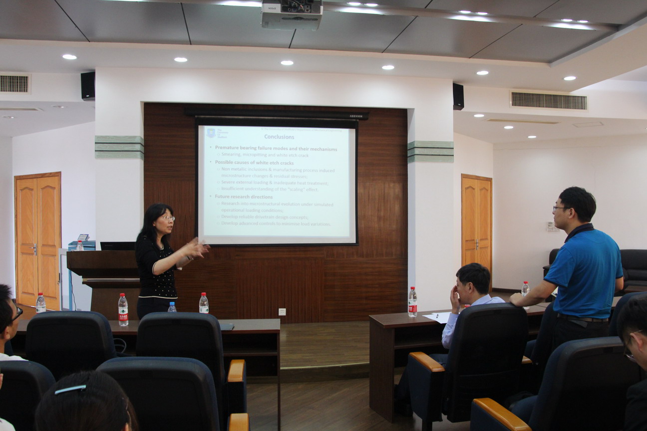 应公司江苏省风力机设计高技术研究重点实验室王同光教授邀请,英国谢菲尔德大学Hui Long(龙慧)博士于2015年10月22日至23日来公司学术访问,并为公司师生做题为“Effects of ExtremeLoading Conditions on Premature Failures ofLarge Scale Wind Turbine GearboxBearings”的学术报告。