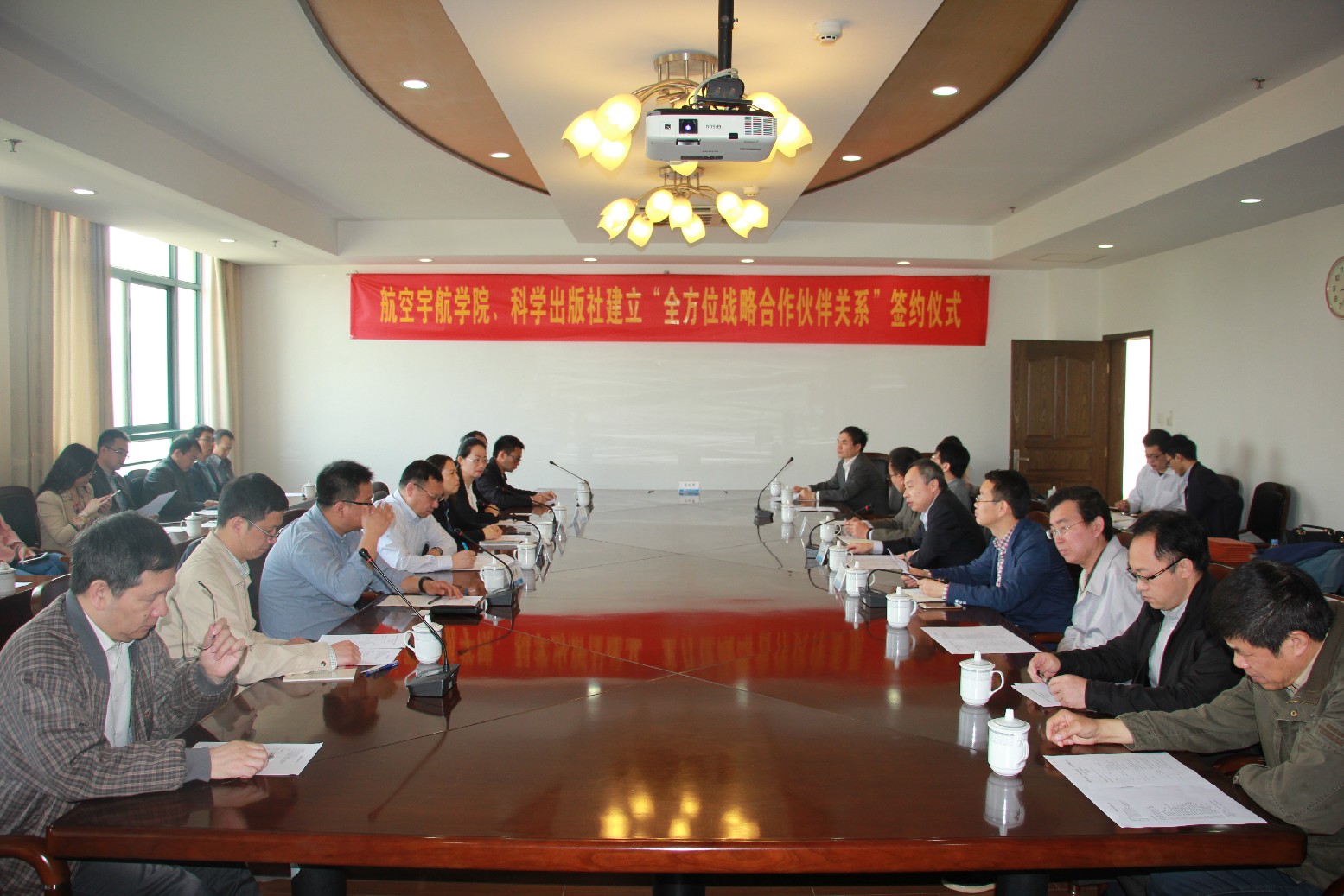夏品奇经理代表公司对科学出版社一行来校合作表示热烈欢迎。公司高度重视此次与科学出版社的战略合作,专门成立了“飞行器设计与工程力学品牌专业系列教材”编委会和“飞行器系列专著”编委会,希望借助科学出版社在学术界、教育界、出版界的品牌优势,通过合作出版高质量、高水平的系列教材和专著,进一步提升公司的人才培养水平和学术影响力,为我国航空航天事业的发展做出新的更大的贡献。