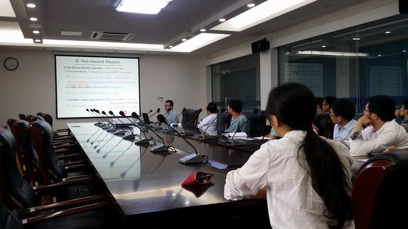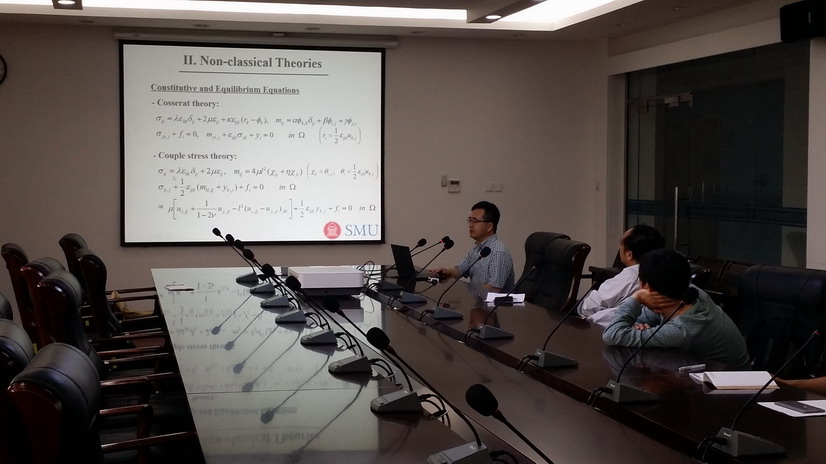 应公司机械结构力学及控制国家重点实验室钱征华教授邀请,美国南卫理公会大学鲍比莱尔工程公司 Xin-Lin Gao教授于2016年5月23日至25日访问了公司,并于5月24日为公司师生做题为“Modeling Size Effects at Small Length Scales Using Higher-Order and Surface Elasticity Theories”的学术报告。报告内容丰富、生动、精彩,介绍了适合分析尺寸效应或者表面能影响的两种高阶弹性理论和一种表面弹性理论及其分别在梁、板等简单结构方面的应用。对公司相关科研工作具有借鉴作用。同时,还结合自己多年的研究经历,讲述了如何在基础研究上进行创新性工作等若干问题。钱征华教授主持了此次报告会。