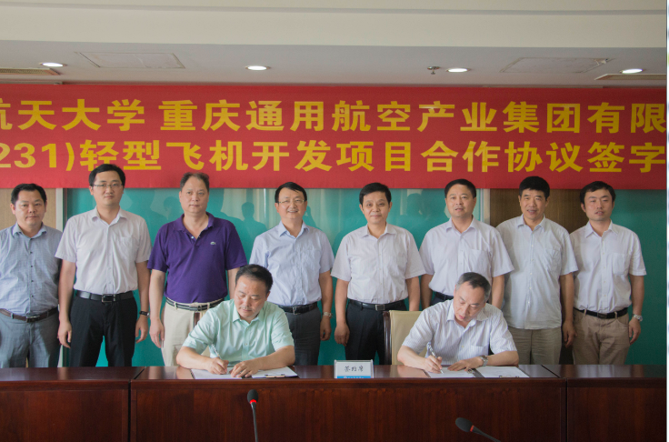 仪式由副董事长许希武主持,项目负责人姚卫星介绍了项目及合作内容;航空宇航公司经理夏品奇与重庆通航集团副总经理吴继森分别代表双方在合作协议书上签字。重庆通航集团董事长黄勇和董事长聂宏分别作了讲话。双方领导都充分肯定了本项目在推动校企产学研合作、发展通用航空产业和人才培养方面的重要意义。根据协议,双方将坚持资源共享、优势互补、平等互利、互惠共赢的原则,确保项目按期完成。