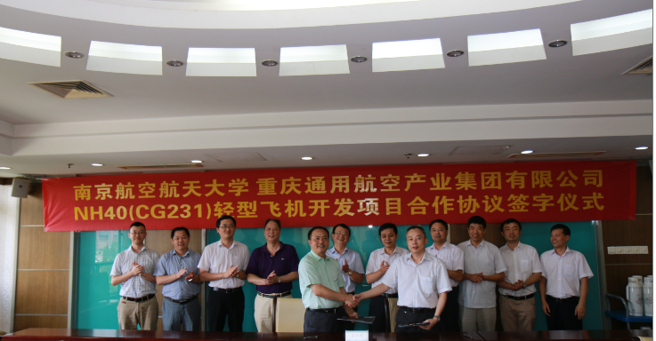 )、重庆通用航空产业集团有限公司(以下简称重庆通航集团)合作开发NH40(CG231)轻型飞机项目协议签字仪式在南京举行。