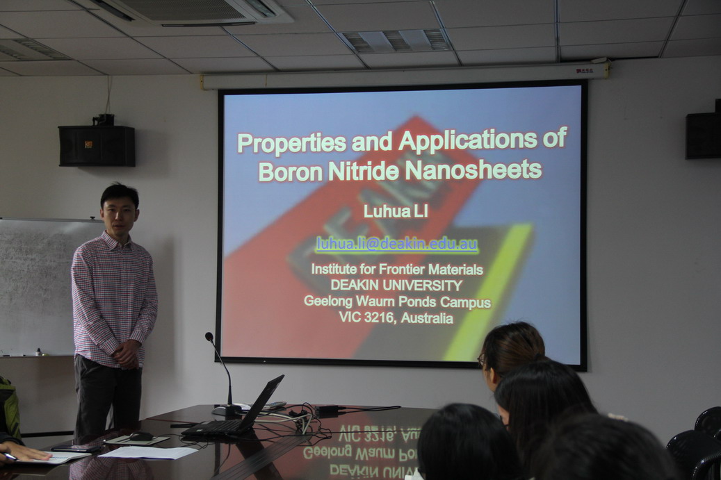 应公司机械结构力学及控制国家重点实验室郭万林教授邀请,澳大利亚迪肯大学前沿材料研究所Luhua Li博士于2016年10月31日访问了公司,并为公司师生做了题为“Properties and Applications of “White Graphene””的学术报告。报告介绍了白石墨烯――六方氮化硼的最新研究进展,并介绍了白石墨烯的特殊性能及应用前景。报告结束后Luhua Li博士与在场的师生就相关领域的研究进行了交流和讨论。师生们认真聆听,踊跃提问,受益匪浅。