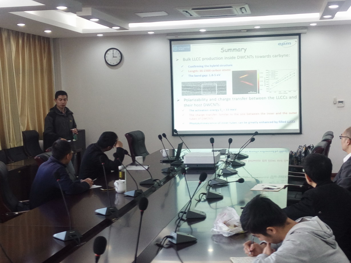 应公司机械结构力学及控制国家重点实验室台国安教授邀请,奥地利维也纳大学Lei Shi博士于2016年11月4日访问了公司,并为公司师生做了题为“Confined linear carbon chains: Synthesis and properties”的学术报告。报告介绍了制备碳原子链的最新研究进展,并介绍了碳原子链的电、光、力和热学特性以及潜在的应用研究。报告结束后Lei Shi博士与在场的师生就相关领域的研究进行了交流和讨论。师生们认真聆听,踊跃提问,受益匪浅。
