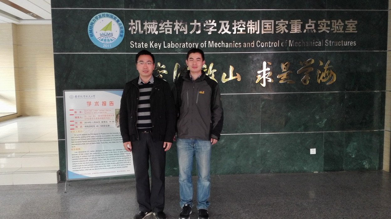 访问期间,Lei Shi博士在台国安的陪同下参观了机械结构力学及控制国家重点实验室,与台国安教授就双方共同关注的二维原子晶体材料在低温拉曼光谱研究方面的相关问题进行了探讨,就人员交流、研究生联合培养和开展进一步的科研合作等问题与有关人员进行了交流,达成了初步合作意向。此次交流访问对于增强公司与奥地利维也纳大学之间开展学术交流以及合作研究将起到积极的促进作用。