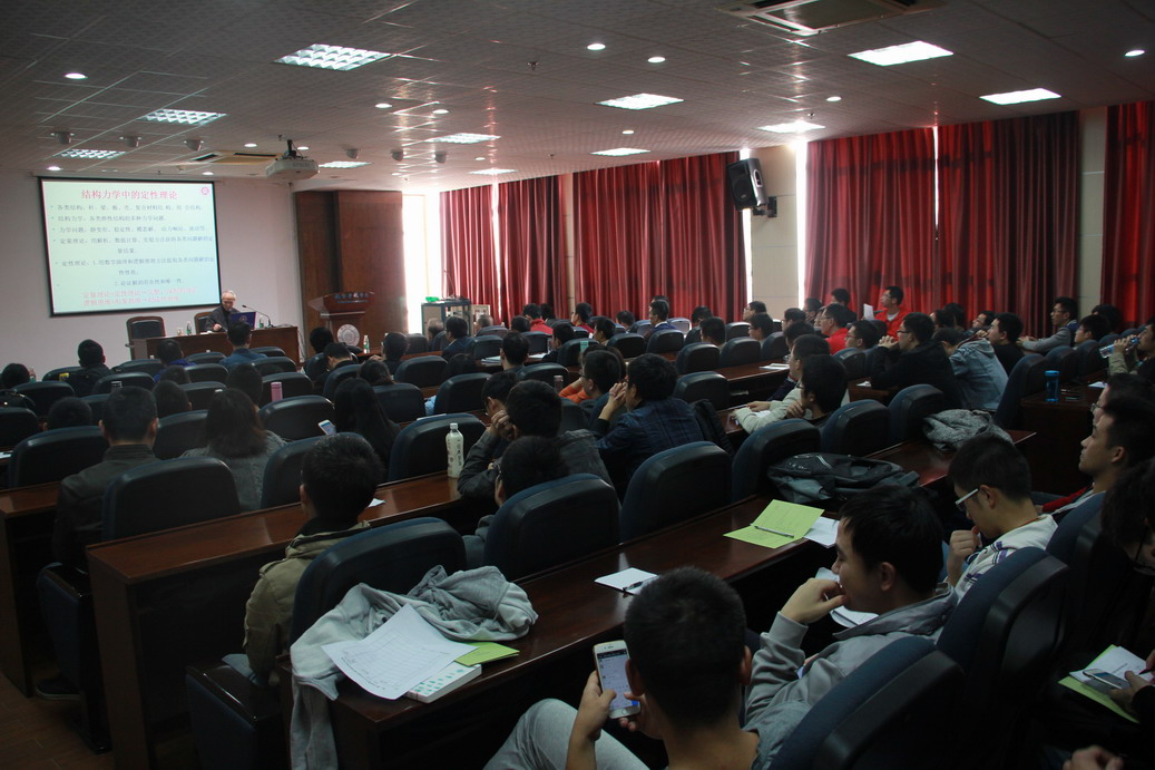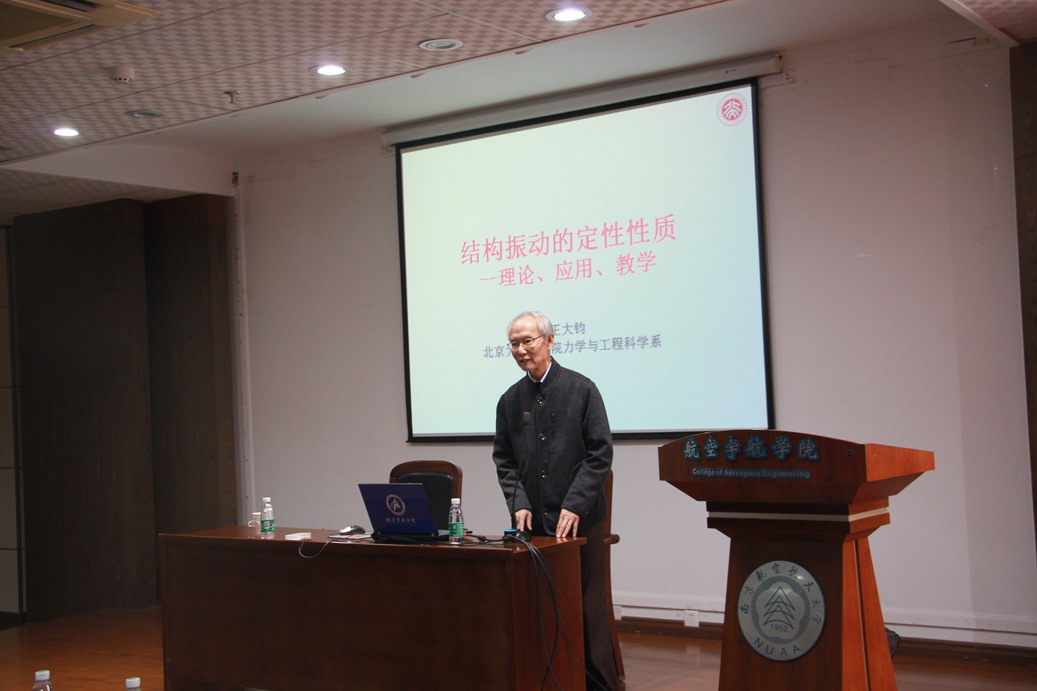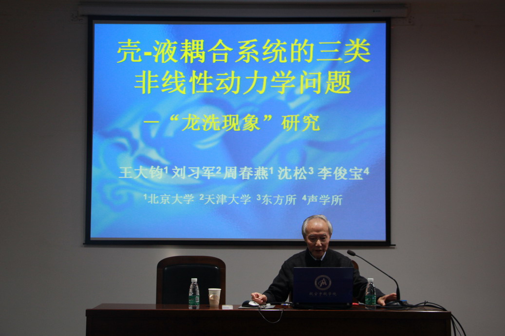 应公司机械结构力学及控制国家重点实验室高存法教授邀请,北京大学力学与工程科学系王大钧教授于2016年11月2日至6日访问了公司,并分别于11月3日、4日为公司师生做了题为“结构动力学中的定性理论”、“壳-水耦合系统的三类非线性动力学问题-源自中国古代文物龙洗”的学术报告。报告分别介绍了结构振动的定性性质的主要理论、在工程中的应用、与振动课教学中的科学美,及“龙洗现象”引发的三类非线性动力学问题,即:由搓振引起龙洗各种“喷水”形态�两个系统间由于摩擦引起的自激振动;弹性壳体内水的线性和非线性毛细�重力波;壳体受横向高频激励产生壳内低频大幅水波。报告结束后王大钧教授与在场的师生就相关领域的研究进行了交流和讨论。师生们认真聆听,踊跃提问,受益匪浅。