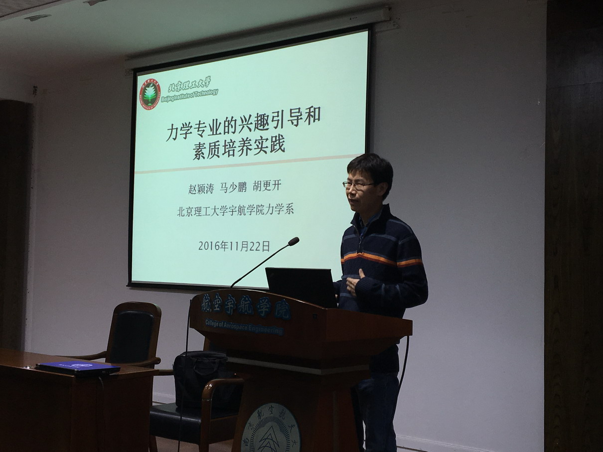 教授邀请,北京理工大学宇航公司赵颖涛副教授于2016年11月22日至23日访问了公司,并于11月23日为公司师生做了题为“力学专业的兴趣引导和素质培养”、“ATF有限元方法的多项式理论及其在压电材料中的应用”的学术报告。报告分别介绍了专业引导型讲座型课程的开设与连贯性设计、基础科研训练、老员工创新实验等,及基于解析应力试函数的有限元方法(ATF)的基础:有效的构造独立且完备的齐次多项式应力函数。报告结束后赵颖涛副教授与在场的师生就相关领域的研究进行了交流和讨论。师生们认真聆听,踊跃提问,受益匪浅。沈星教授主持了报告会。