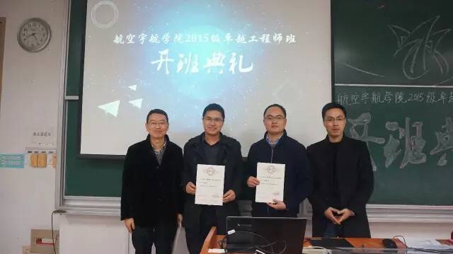 2016年12月21日下午,航空宇航公司在将军路校区6103举行了2015级卓越计划工程师班开班典礼活动。参加活动的有航空宇航公司副经理蒋彦龙教授、卓越计划负责人郑祥明老师、班主任薛彩军老师、两位来自609所和奇蛙科技公司的行业教师刘桉、孟繁鑫 ,以及2013级卓越班代表。活动典礼由公司教学办周永惠老师主持。全体2015级卓越班的员工参加了开班典礼。