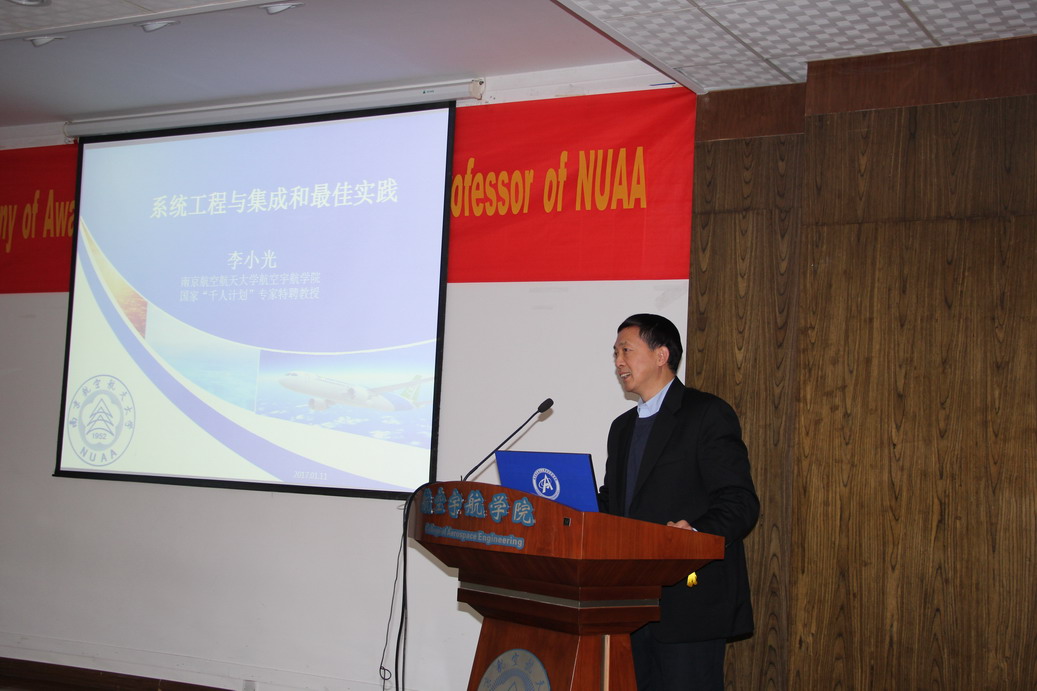 2017年1月11日上午,在明故宫校区航空宇航公司报告厅,公司专家李小光教授应邀做了题为“飞行器系统工程和集成方法与最佳实践”的报告。