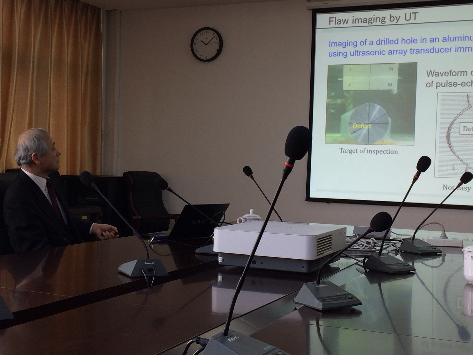应公司航空宇航公司机械结构力学及控制国家重点实验室钱征华教授的邀请,日本东京工业大学Sohichi HIROSE教授于2017年3月28日至30日访问了公司,并于3月29日为公司师生做了题为“Elastic Wave Analysis and NDE”的学术报告。报告介绍了基于卷积的时域边界元方法,并详述了该方法的理论推导,及该方法在非线性超声波中的应用;同时,又介绍了弹性波在无损检测领域的应用,并详述了如何采用弹性波的近似解来探测缺陷,及超声导波的水下探测。报告结束后Sohichi HIROSE教授与在场的师生就相关领域的研究进行了交流和讨论。师生们认真聆听,特别是博士生们踊跃提问,受益匪浅。钱征华教授主持了报告会。