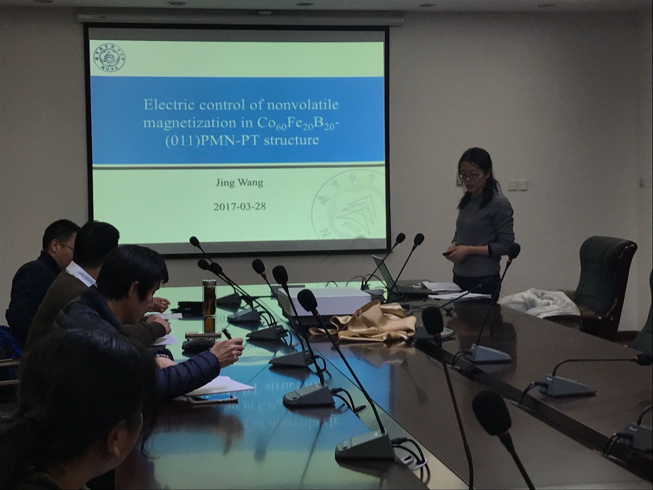 按照校人事处公派留学回国教师的要求,航空宇航公司机械结构力学及控制国家重点实验室王婧副教授于2017年3月28日为公司师生做了题为“磁电异质结中电场调控的非易失性磁性能”的学术报告。报告介绍了其在英国剑桥大学访问期间所开展的磁电异质结的电场调控磁性能的相关研究工作。
