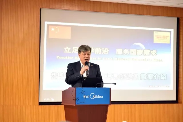 揭牌仪式由美的中央研究院固体力学实验室负责人李忠华主持。他首先介绍了美的集团近年来在静音技术领域的人才和设备投入,并进一步表达了与南航机械结构力学及控制国家实验室合作的期待。美的集团副总裁、中央研究院经理胡自强博士在现场为揭牌仪式致辞。