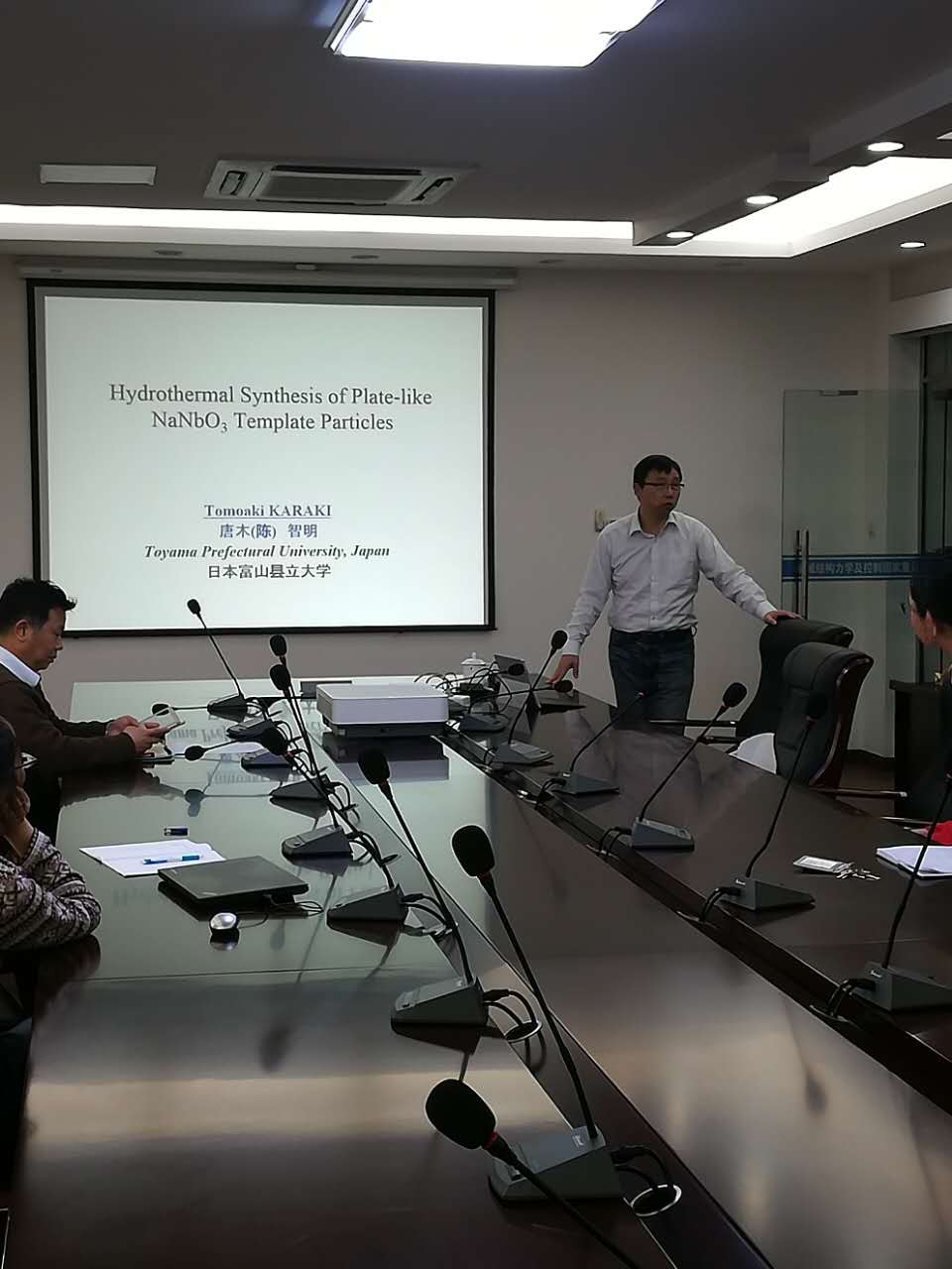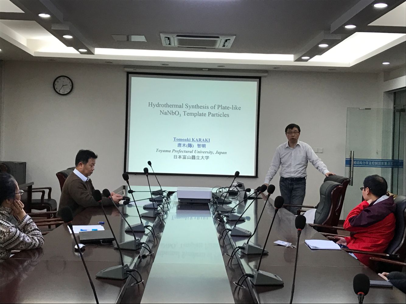 应公司航空宇航公司机械结构力学及控制国家重点实验室严康副教授的邀请,日本富山县立大学工学部KARAKI Tomoaki教授于2017年4月6日至7日访问了公司,并于4月6日为公司师生做了题为“水热法合成NaNbO3 片状粉体”的学术报告。报告介绍了日本的压电材料及器件的研究发展近况,日本富山县立大学在压电陶瓷粉体制备技术研究中取得的成果等方面内容。报告结束后KARAKI Tomoaki教授与在场的师生就相关领域的研究进行了交流和讨论。师生们认真聆听,特别是博士生们踊跃提问,受益匪浅。机械结构力学及控制国家重点实验室朱孔军教授主持了报告会。