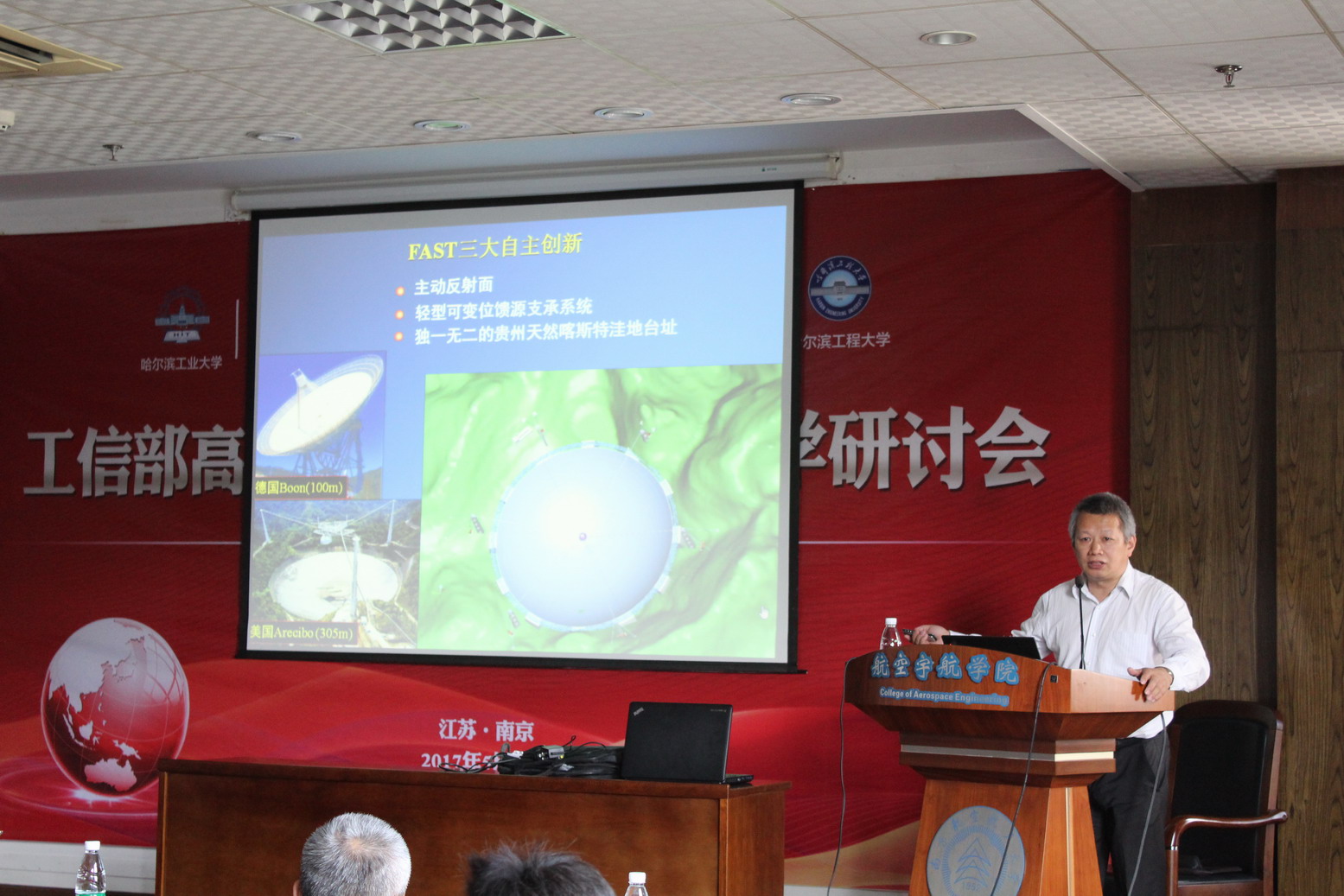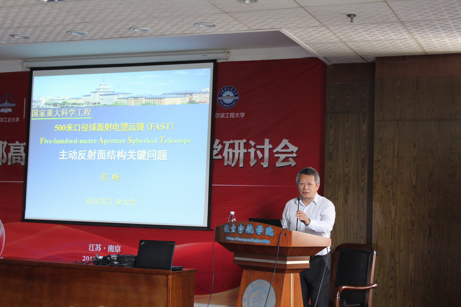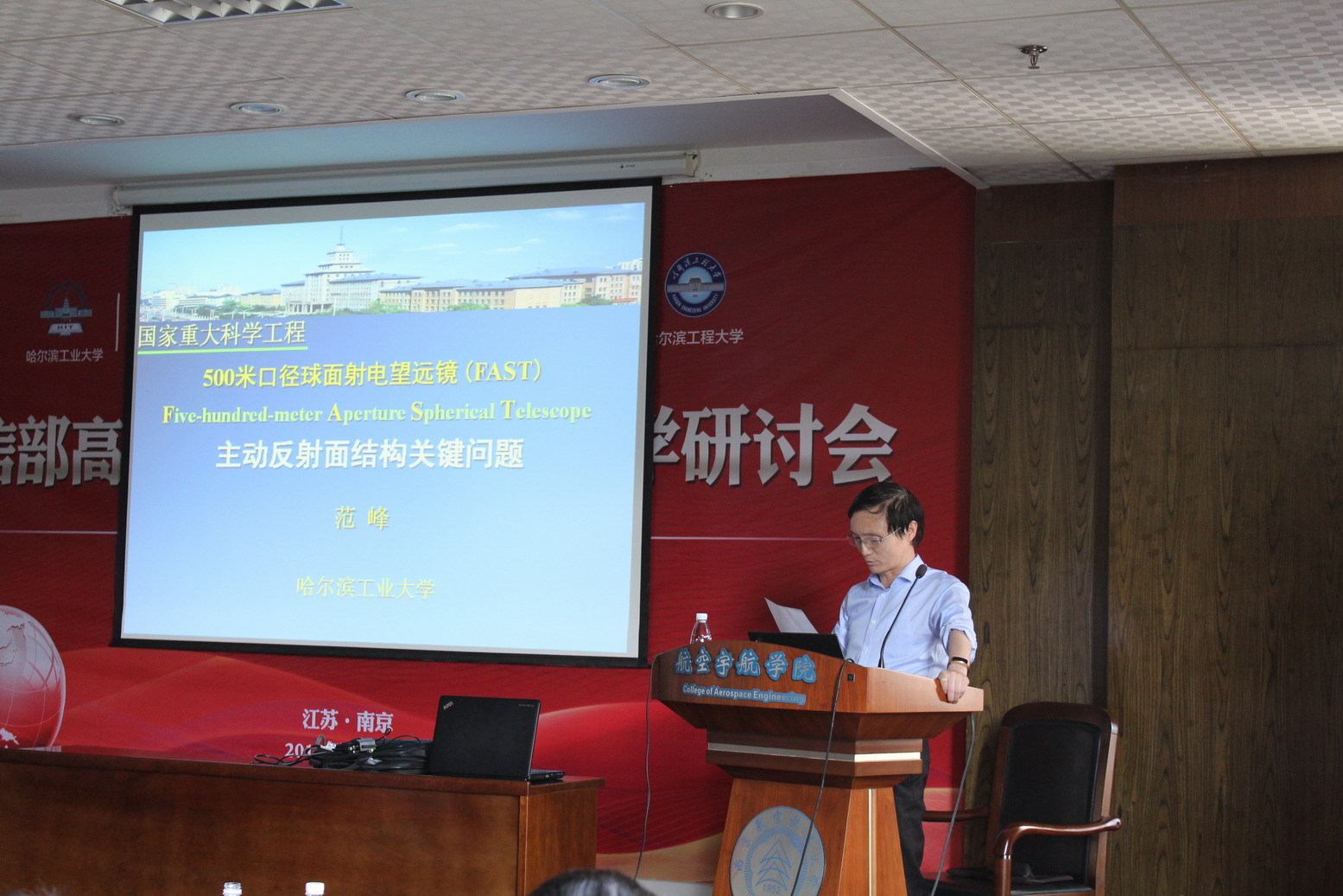 应公司航空宇航公司土木工程系吴瑾教授邀请,哈尔滨工业大学土木工程公司经理、国家杰出青年基金获得者、长江学者范峰教授于2017年5月12日至14日访问了公司,并于5月12日为公司师生做了题为“500米巨型望远镜FAST结构关键技术”的学术报告。报告内容丰富、生动、精彩,介绍了FAST建设背景、反射面结构系统及关键技术、健康监测与诊断、模型试验等内容。吴瑾教授主持了此次学术报告会。